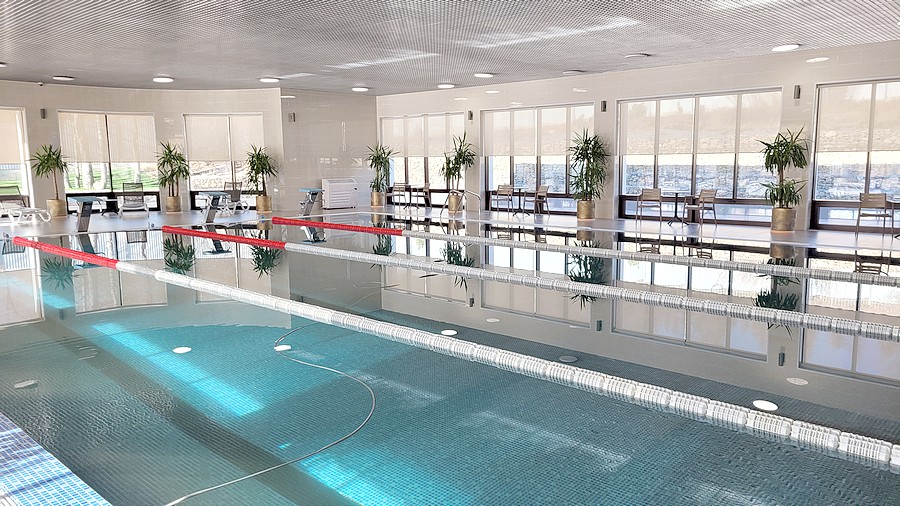 - водная зона: два бассейна с минеральной водой и гидромассажем, 25-метровый плавательный бассейн на 4 дорожки с теплыми полами и джакузи;
