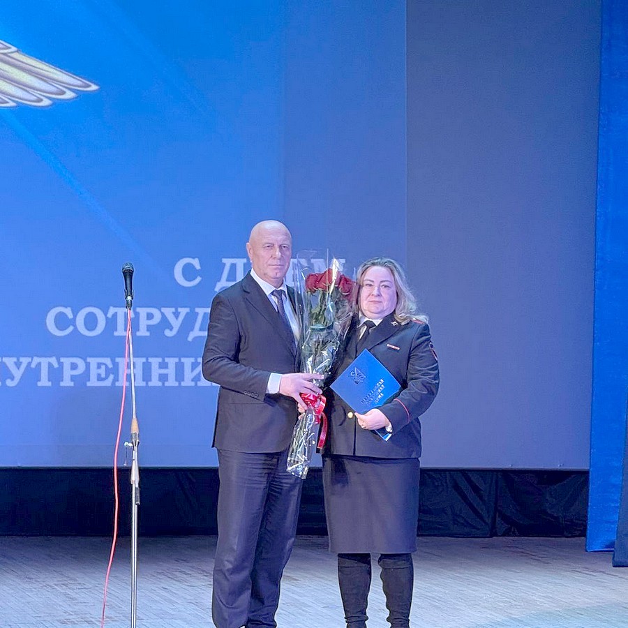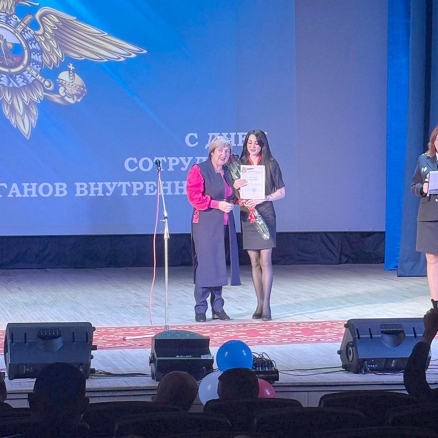 Далее представители Общественного совета при Отд МВД России «Ольское» О. Е. Маринкевич и Е. В. Дорофеева поздравили с праздником и вручили сотрудникам благодарности за успешную службу и взаимодействие с Общественным советом, наградили победителей, призеров и участников конкурса «Мои родные работают в полиции».