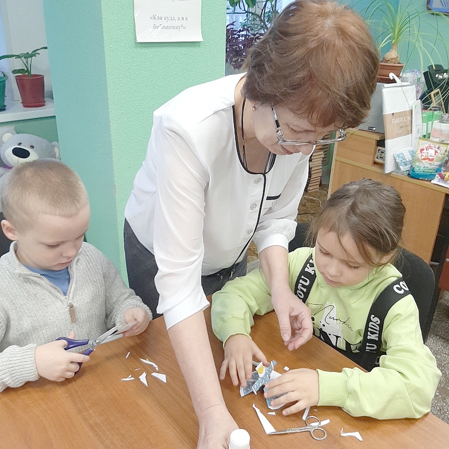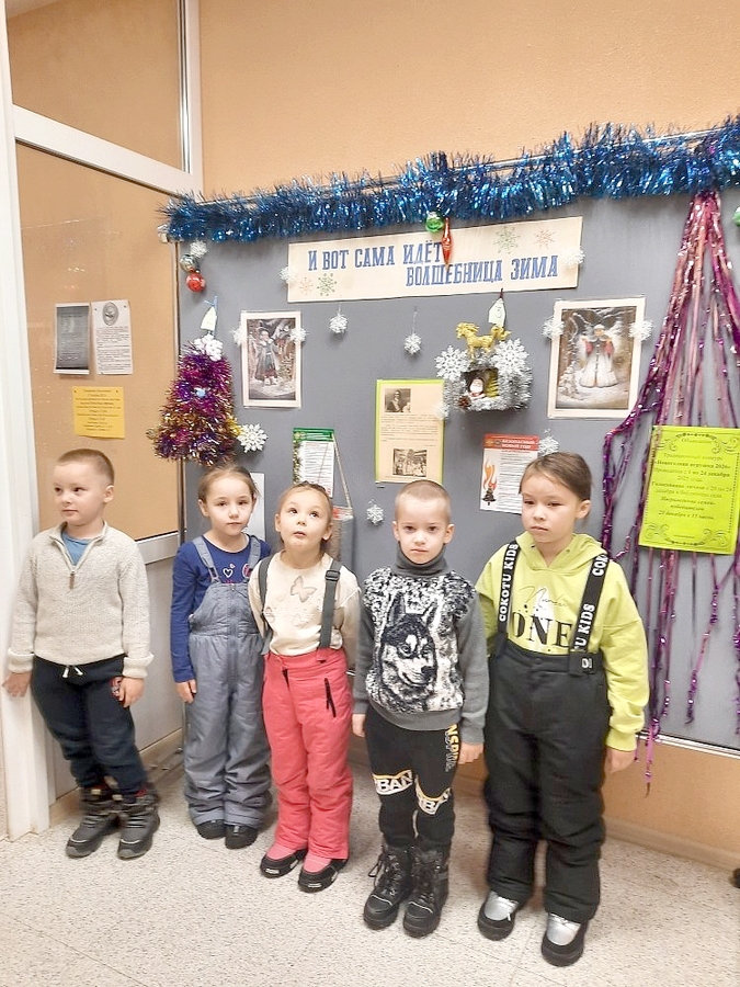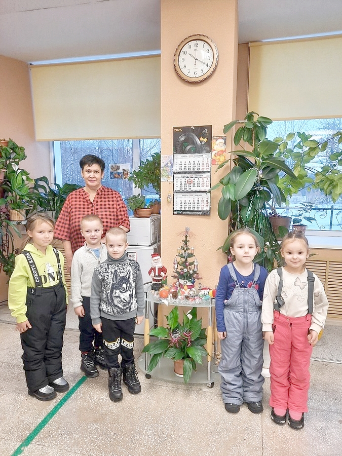 После обзора новогодних книг провели экскурсию по ёлкам разного времени. Изготовили новогоднюю игрушку своими руками. С удовольствием посмотрели мультфильм «Новогодняя ночь» (1946 г.), а затем малыши получили гостинцы от Деда Мороза.