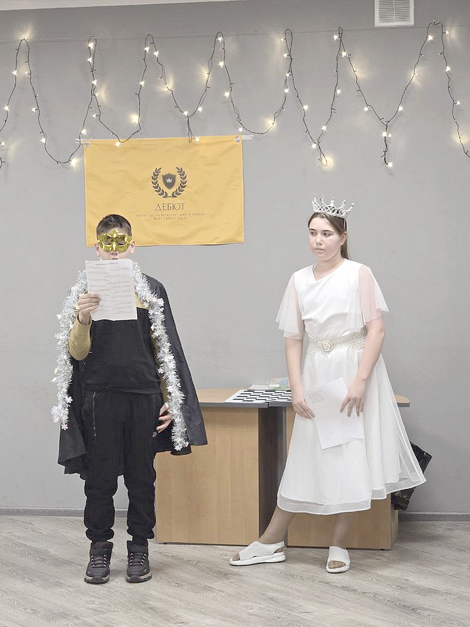 Королева Чёрных открыла официальную часть праздника красивыми стихами о шахматах. Затем ведущие приветствовали гостей и подвели итоги двухлетней работы клуба. «За 2 года мы принимали участие в соревнованиях различного уровня сложности – районного, межрайонного и областного значения. А это ни много ни мало – 34 различных турнира в 2024 году и 34 шахматные встречи в 2025! И нам есть чем гордиться: у нас появились игроки, выполнившие 1-й, 2-й и 3-й юношеский разряды – это Андрей, Полина, Матвей, Елизавета, Роман и Сергей. Они являются ярким примером выдержки, самоотдачи и упорства в достижении цели! На сегодняшний день в клубе около 60 участников, из них 38 воспитанников объединения «Шахматы» ЦДО. И всё это стало возможным только благодаря поддержке первого заместителя председателя Магаданской областной Думы А. А. Басанского, который помог нам купить шахматное оборудование. Большую поддержку оказывает администрация Ольского округа. Благодаря слаженной работе отдела культуры, спорта и молодежной политики администрации и МКУ «Эксплуатационный центр» наши шахматисты выезжают на турниры в Магадан. 2 раза в год юные дебютанты участвуют в шахматных сменах, проводимых в «Северном Артеке». И в этом году им посчастливилось провести смену с международным гроссмейстером, «Лучшим тренером России» Дмитрием Кряквиным. Кроме того, «Дебют» проводит товарищеские встречи с трудовыми коллективами Ольского района, приглашает на блиц и сеанс одновременной игры шахматистов из Сокола, Палатки и Магадана. И всегда наши шахматисты завоёвывают награды и медали. Две наши спортсменки вошли в состав резерва сборной команды Магаданской области – Полина и Елизавета. Можно с уверенностью сказать, что юные шахматисты Ольского округа прочно занимают 3-е место по Магаданской области. Осенью 2024 г. Центр дополнительного образования детей п. Ола взял наш клуб под свое крыло. И к нам пришли маленькие любители шахмат – первоклашки, которые очень стараются вникнуть в суть этой древнейшей игры, раскрыть её тайны. Несколько самых упорных новичков уже принимают участие в областных соревнованиях. Они открыли для себя совершенно новый мир здоровой интеллектуальной конкуренции, спортивного азарта и осмысленного уважения к сопернику. Мир, в котором живёт каждый настоящий шахматист», – рассказывали с гордостью ведущие.