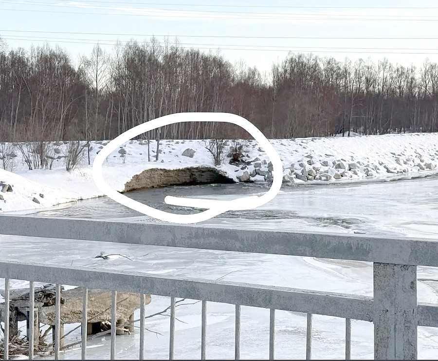 Многие жители, которые ездят через мост р. Ола, конечно, обратили внимание на то, что река вскрылась и совсем не по-зимнему ведет себя. Более того, течением подмыло берег, где в прошлом году он был укреплен возведенной дамбой.