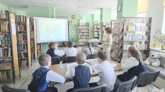 К столетию Ольского района в библиотеке села Клёпка прошла презентация для читателей младшей школы «Посёлки Ольского района» (6+).