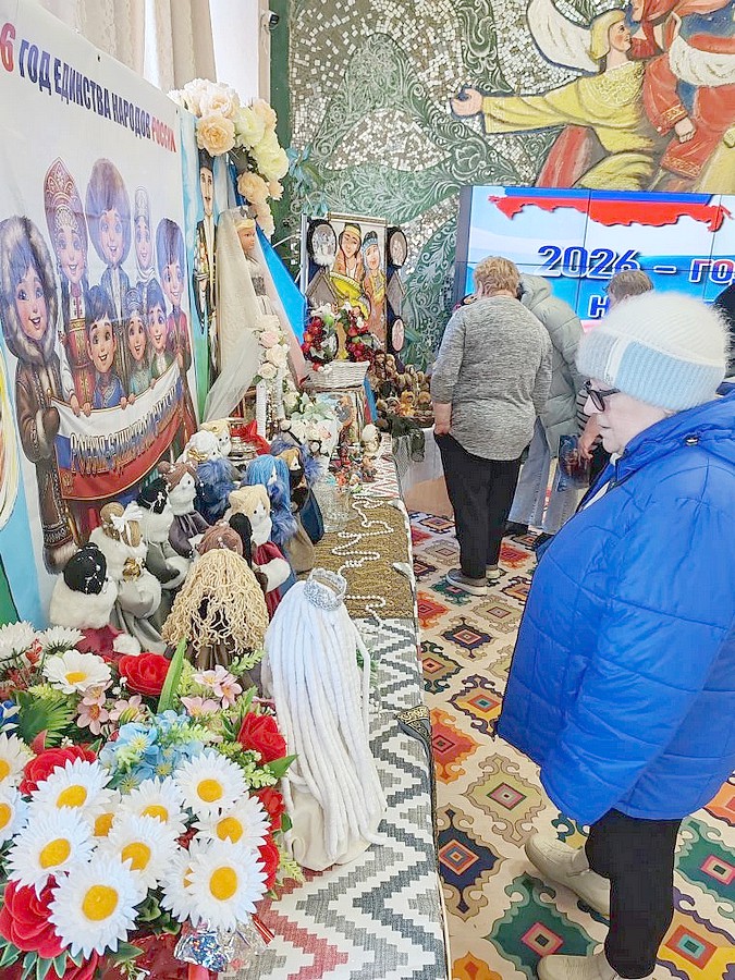 Уже при входе в Центр культуры кадеты клуба «Спецназ» (рук. И. Костюк) торжественно встречали зрителей, поздравляя с праздником и создавая им праздничное настроение. До начала концерта гости знакомились в фойе с экспонатами, представленными хранителем фонда Ольского краеведческого музея И. Покатиловой, с фотографиями выставок «Верны долгу и Отечеству» и «Родина их не забудет» о героях СВО. На 2-м этаже Раде Гусейнова и Ирина Патрина, работники СДК с. Гадля, развернули выставку национальных сувениров, на которой представили культуру азербайджанского и эвенского народов. Красочные куклы и сувениры изготовлены руками участников кружка «Лавка мастеров» и его руководителем Раде Гусейновой. Работники ЦДО украшали желающих аквагримом.