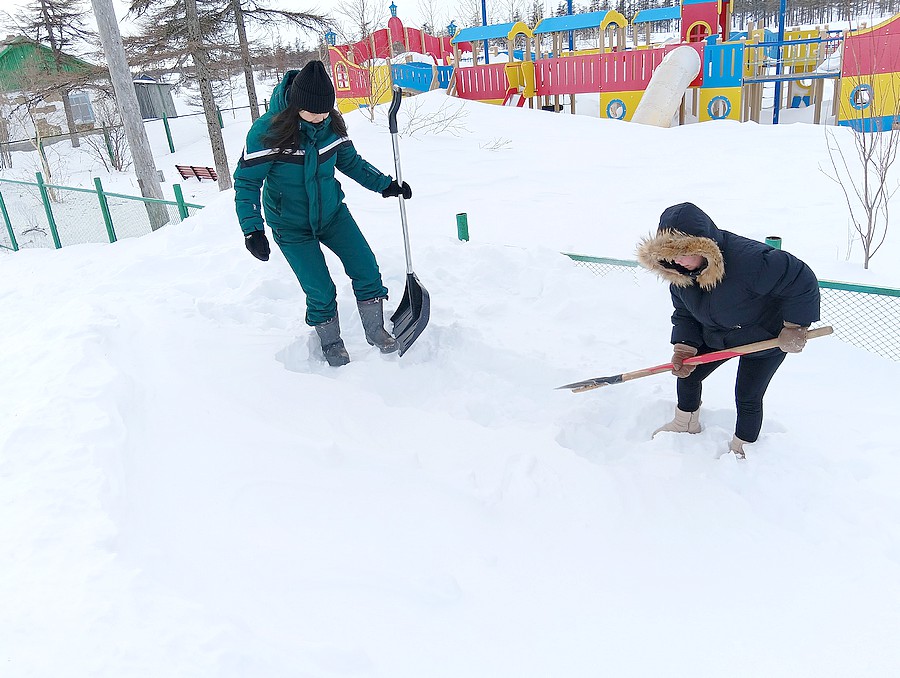 Вот и на этот раз добровольцы прочистили тротуарную зону от снега, сделали ступеньки подъёма и спуска для жителей села Тахтоямск.