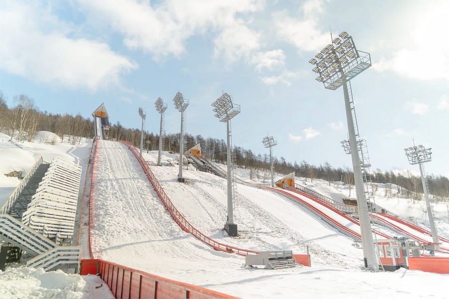 Осмотрели новый трамплинный комплекс площадью 1,5 тыс. квадратных метров для подготовки спортсменов в микрорайоне Солнечный, который готовится к торжественному открытию. Комплекс включает большой трамплин К-60, а также трамплины К-30 и К-15. Их поверхность имеет специальное высокопрочное покрытие, устойчивое к морозам и воздействию ультрафиолета. Это позволит летающим лыжникам Колымы тренироваться зимой и летом. На территории базы также возведены тренерская биржа, судейская вышка, зрительские трибуны, комфортные раздевалки, тренажерный зал. Для спортсменов будут оборудованы спортивные площадки. Ожидается, что новая база станет центром развития зимних видов спорта на Дальнем Востоке.