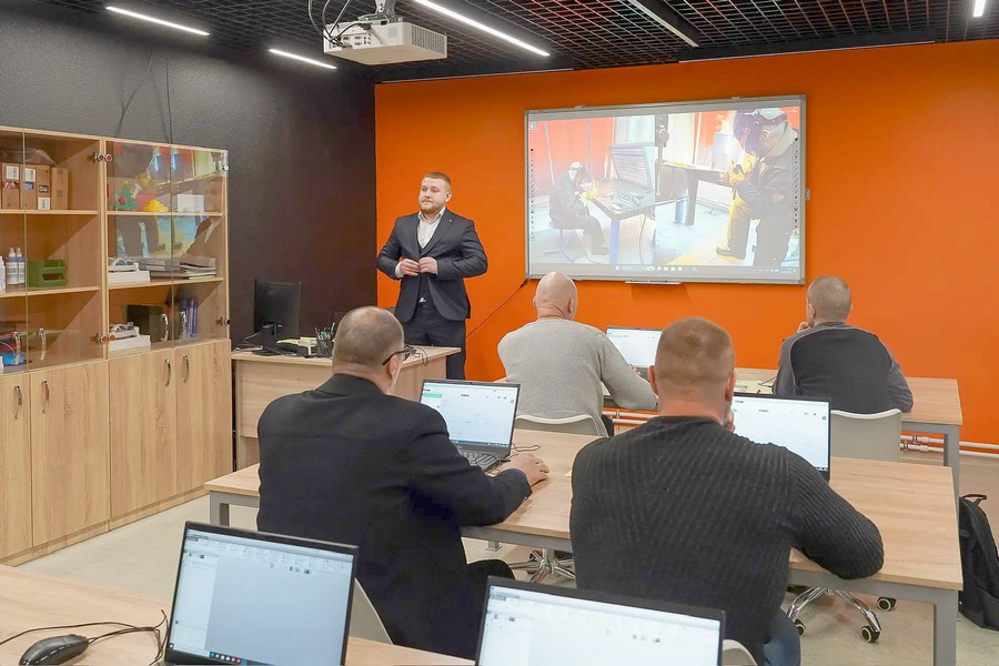 Ветераны спецоперации проходят курсовую подготовку по направлениям: «Машинист бульдозера», «Управление погрузчиком», «Сварщик», «Оператор БПЛА», водитель категории «В», «С». Юрий Трутнев побеседовал с победителем регионального чемпионата «Абилимпикс», ветераном спецоперации, курсантом региональной кадровой программы «СВОи Герои 49» Богданом Атласюком. Он рассказал, что обучение в ЦОПП помогает адаптироваться к мирной жизни, что для участников спецоперации очень важно. «Здесь колоссально профессиональный коллектив, и нам предоставляется возможность обучиться чему-то новому, расширить свой кругозор», - подчеркнул ветеран. Полпред пожелал Богдану Атласюку успехов и пожал ему руку.