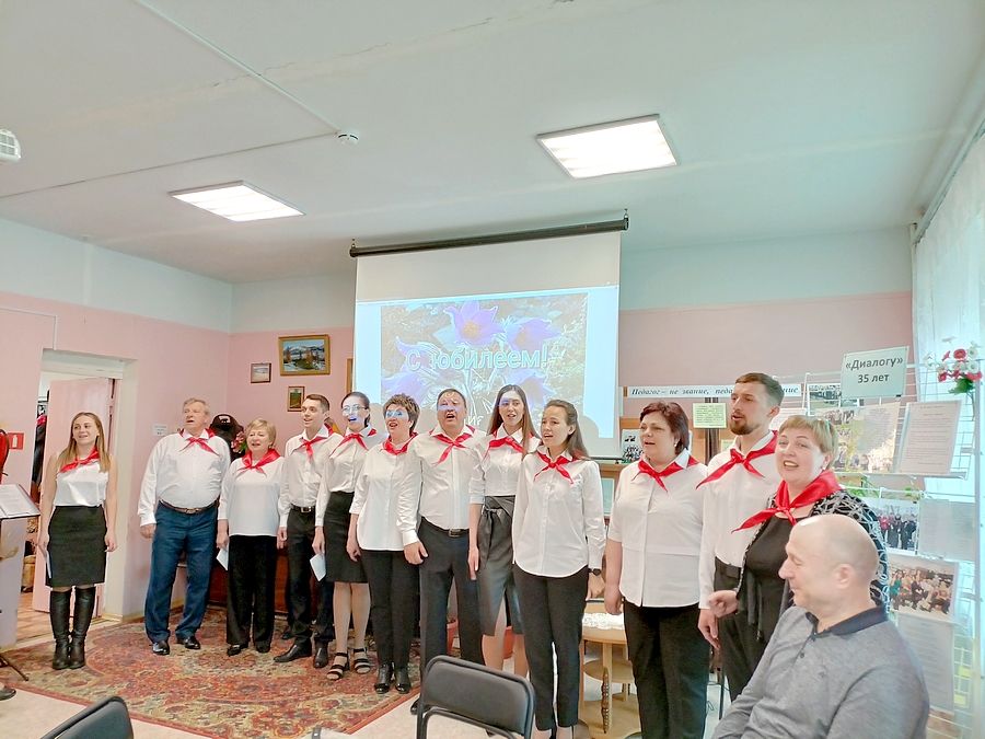Листая страницы старых фотоальбомов, участники встречи знакомились с первыми «диалоговцами». Среди них: Ирина Майфатова, Галина Казадаева, Нина Борисова, Тамара Медведева, Мария Железная, Анна Калинина, Виталий Бокий, Людмила Тимбакова, Геннадий Омельяненко; участники первого новогоднего представления: Наталья Хаютина, Нина Борисова, Раиса Ширяева, Надежда Дроздовская, Ольга Никонова, Галина Старчак, Мария Рудых.