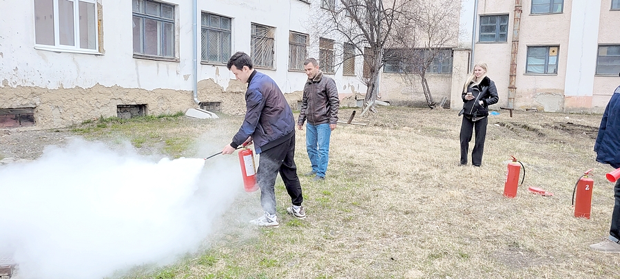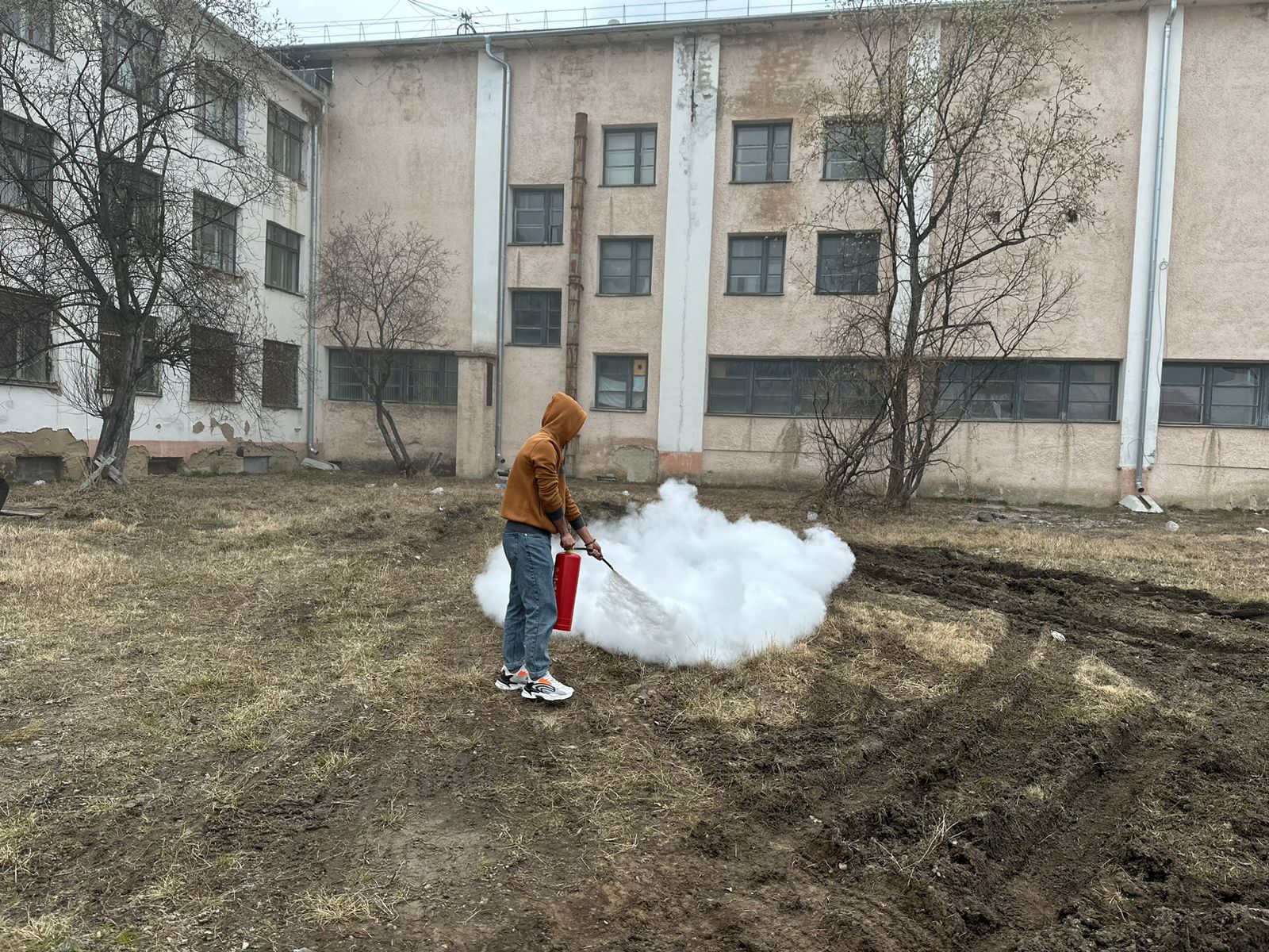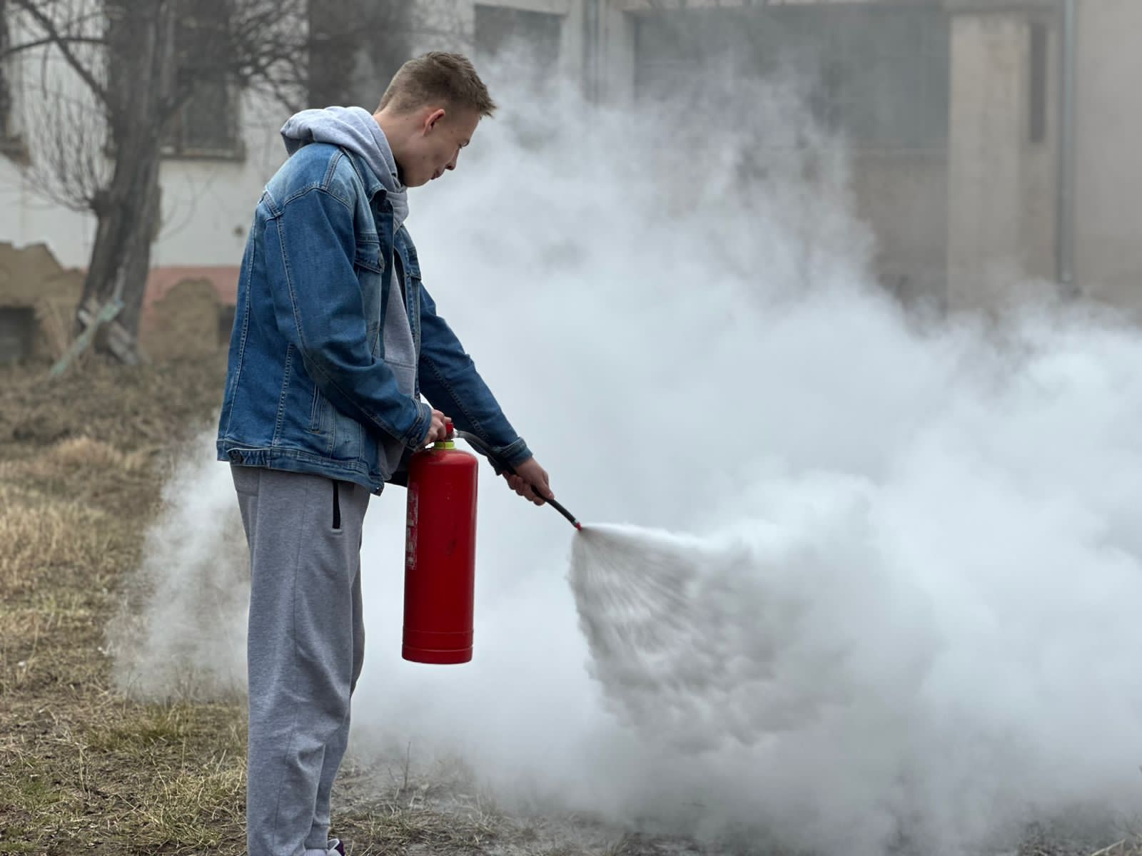 Ребята узнали: какими бывают огнетушители, для тушения каких пожаров они предназначены, в чём визуальная разница между порошковым и углекислотным огнетушителем, какие меры предосторожности необходимо соблюдать при использовании огнетушителей разных видов.