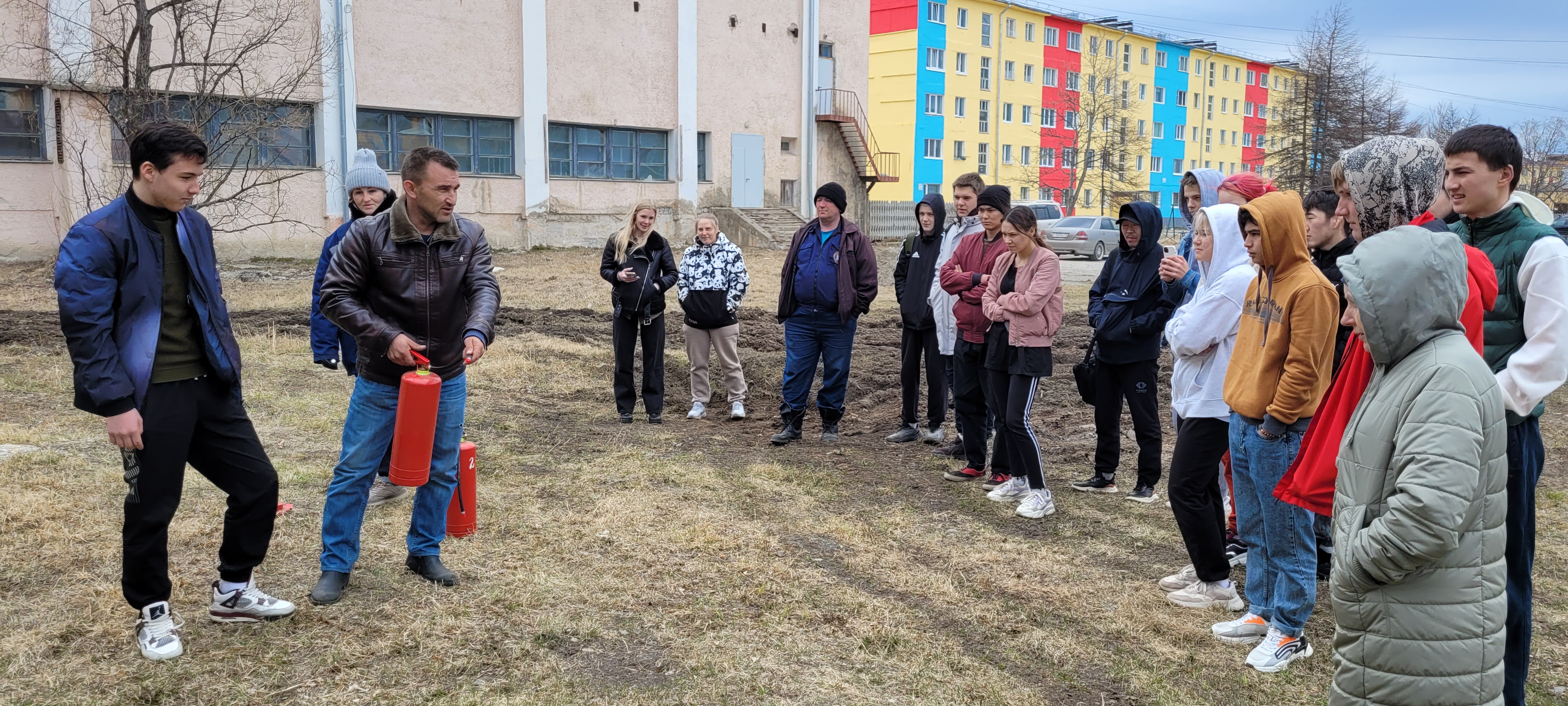 Состоялась очередная встреча работников пожарной части № 9 (по охране п. Ола) ОГПС по Ольскому району и студентов Ольского филиала государственного бюджетного профессионального образовательного учреждения «Магаданский политехнический техникум» п. Ола (16+).