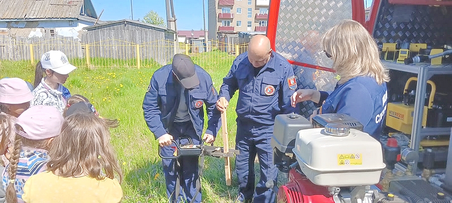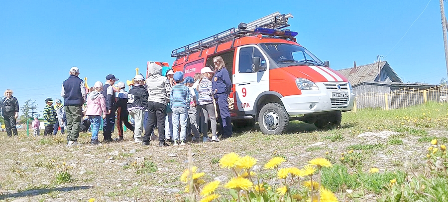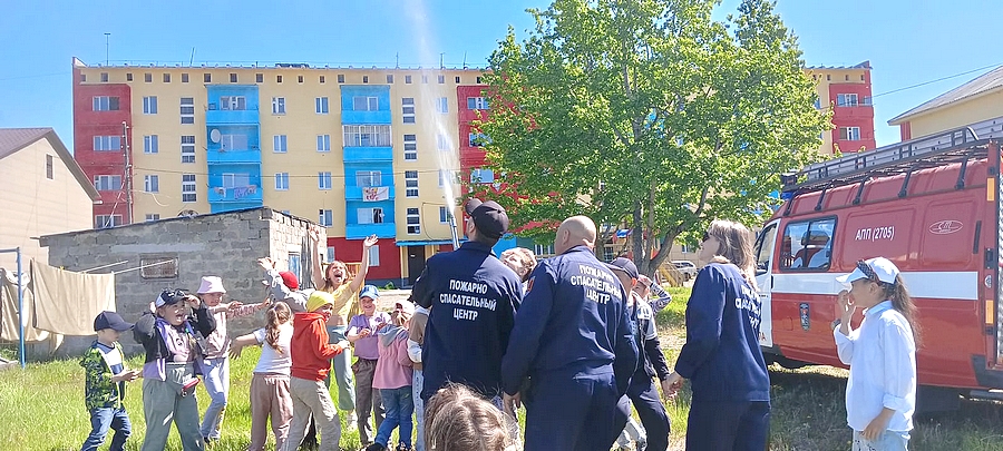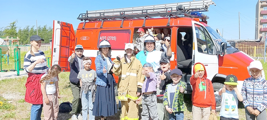 Гостей в лагере встретили словами «дорова, дялбу» - здравствуйте, друзья (перевод с эвенского). Занятие с детьми началось с повторения правил пожарной безопасности и правил поведения в случае возникновения пожара. Ребята рассказали, как они будут себя вести в той или иной опасной ситуации, как правильно нужно передавать сообщение в пожарную охрану.