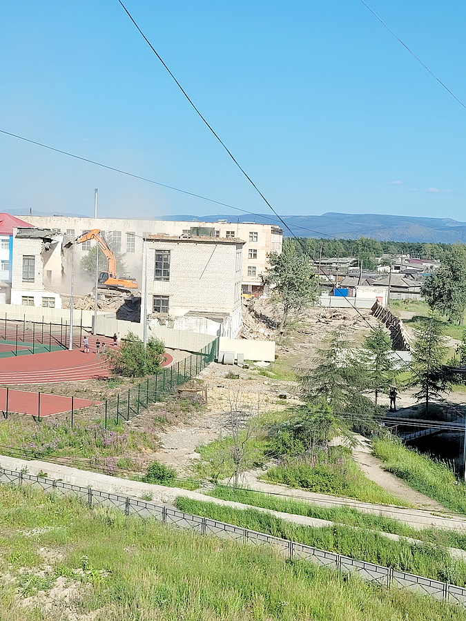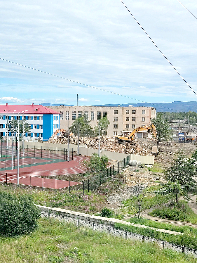 Несколько дней назад начались работы по сносу здания старой Ольской школы в рамках контракта под названием «Строительство средней школы на 825 мест в поселке Ола Магаданской области, 2 этап».