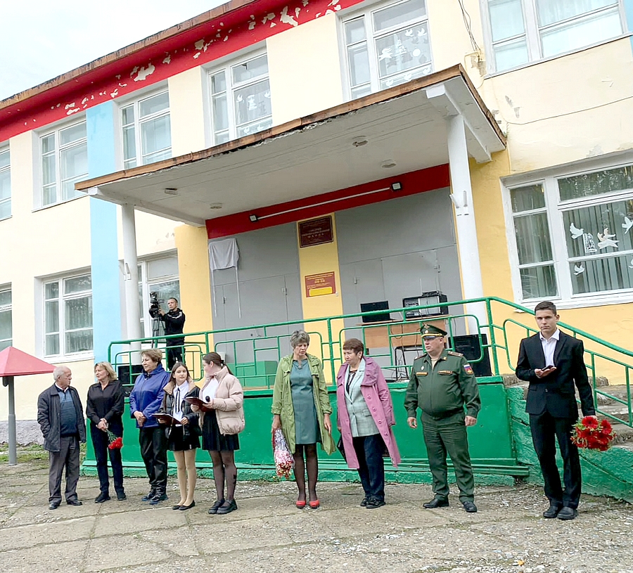 И вот наступил торжественный момент. Почётное право открытия мемориальной доски предоставили Ирине Алексеевне Ерисовой и маме Александра – Анне Валерьевне. Собравшиеся возложили цветы к мемориальной доске. В память об Александре Сергеевиче Мотузе объявили минуту молчания.