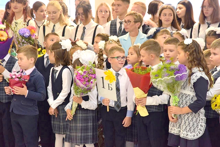 В новом 2023-2024 учебном году к занятиям приступили более 1 000 учеников, из них 105 первоклассников. Все они нарядные, с красивыми букетами, впервые сели за школьные парты. Для них прозвучал трогательный Первый звонок.