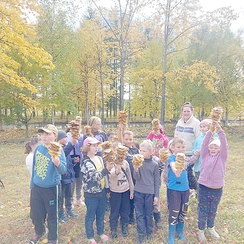 Экологическое игровое путешествие по станциям началось на площади Клепкинского Дома творчества и досуга совместно с волонтерами культуры. В начале мероприятия ребята получили письмо от Осени, из которого узнали о том, что ей нужна помощь детей – собрать осенние следы. Участники квест-игры с удовольствием отправились по ярким и загадочным станциям! Во время путешествия они побывали на станции «Клумба», где собирали семена цветов; на поляне сказок ребята нанизывали листья на шпажку. А на станции «Загадочная» участники отгадывали осенние загадки и говорили о том, как природа, животные и люди готовятся к зиме.