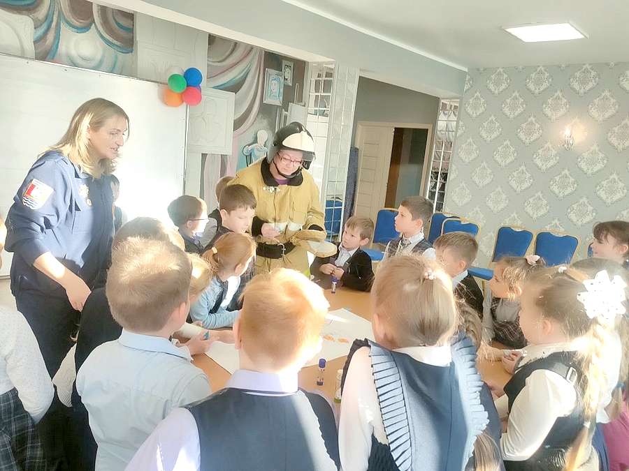 Учащиеся первых классов Ольской средней школы приняли участие в познавательной игровой программе «Юный пожарный» (6+).