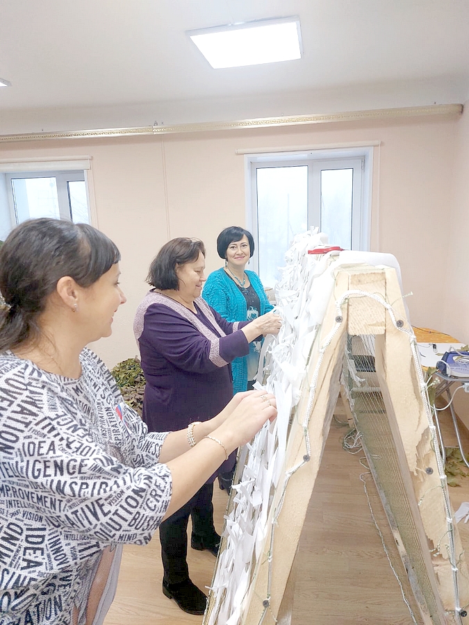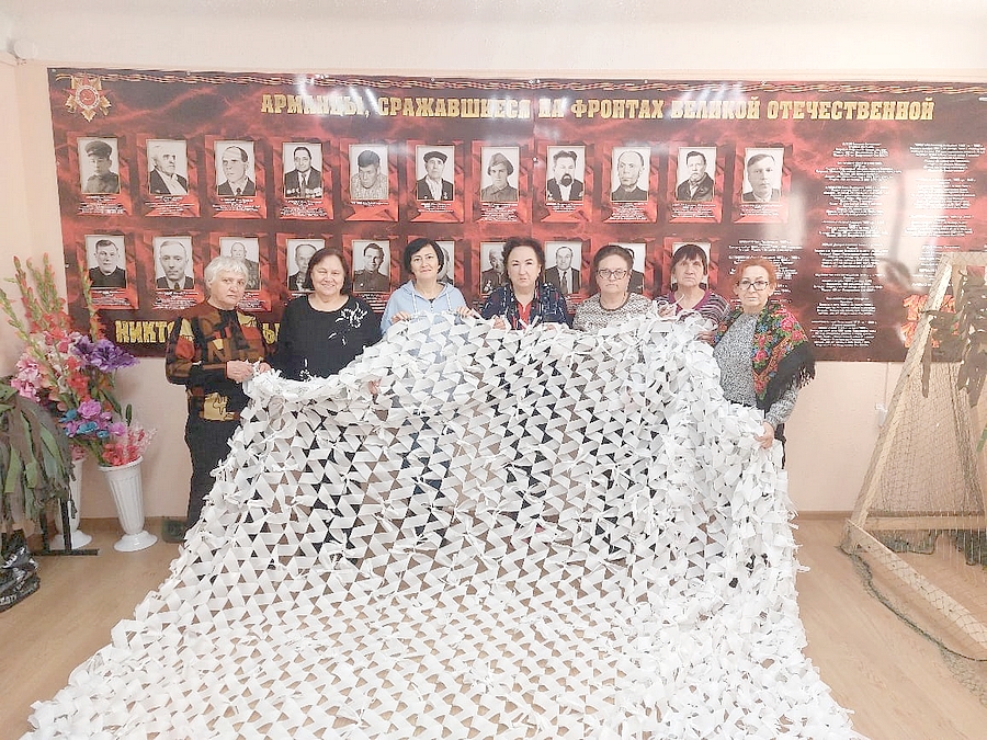 Вот и сейчас молодые добровольцы явились инициаторами помощи фронтовикам - вместе с жителями поселка приступили к изготовлению маскировочных сетей. В свободное время, по вечерам, в выходные дни приходят они в Центр досуга, кто-то кроит материал, кто-то научился насаживать сети, кто-то плести их, и сейчас сам обучает новичков плетению. Работают дружно, с песнями. Поют любимые - «Катюшу», «Смуглянку», «В землянке». Работа спорится и уже несколько сетей готовы к отправке на СВО.