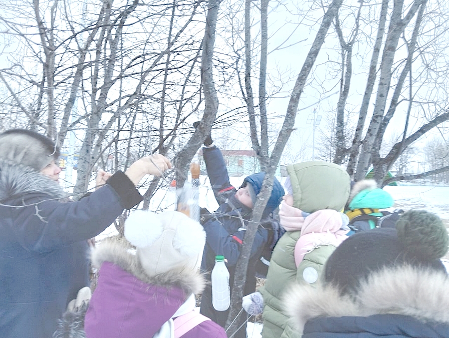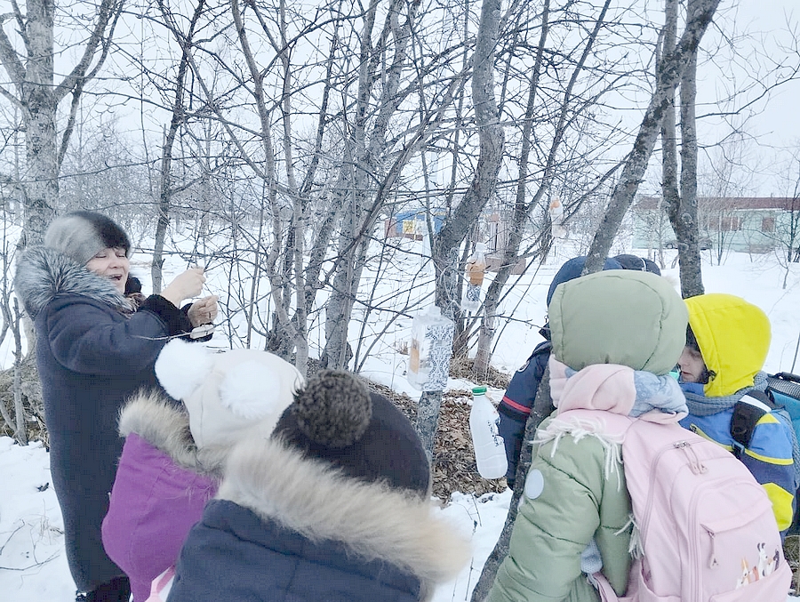 После мероприятия мальчики и девочки развесили кормушки, сделанные своими руками, на улице в «птичьей столовой». Каждый из нас может помочь птицам пережить зиму, и тогда они обязательно отблагодарят нас своей пользой и песнями.