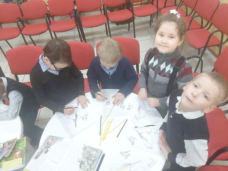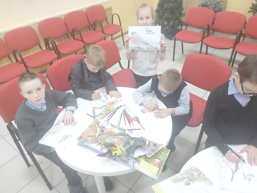 В ходе мероприятия библиотекарь обсудила с детьми роль птиц в природе и жизни человека, уделив внимание их подкормке в зимний период. Ребятам было интересно узнать, какие птицы зимуют в нашем районе, о их повадках и привычках, чем они питаются и что любят. Здесь важно помнить, что у каждой птицы свой вид лакомства. Сырое сало – превосходный корм для синиц и дятлов. Семена подсолнечника едят практически все птицы. Овес, пшено и просо – воробьи. Ягоды рябины – любимая пища снегирей. Хлебные крошки, остатки мучных и мясных продуктов тоже можно давать птицам. Ребята отвечали на вопросы викторины «Что мы знаем о птицах Севера», нарисовали и разукрасили тех пернатых, о которых нам нужно заботиться, играли в дидактические игры: «Большой и маленький», «Угадай по описанию», «Кто как поет», рассматривали книги и журналы с иллюстрациями зимних птиц, а участники клуба «Чистый родник» читали стихи.