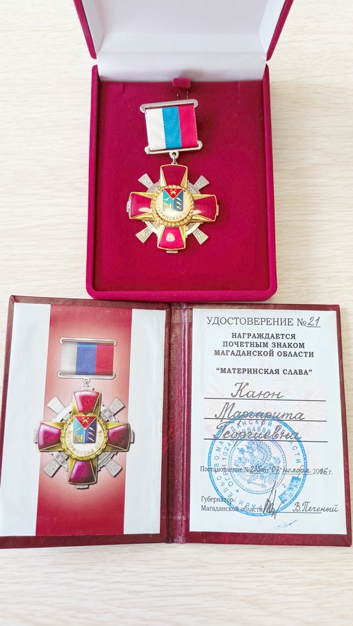 Мама шестерых сыновей Маргарита Георгиевна была удостоена почетного знака Магаданской области «Материнская слава» в 2016 году в День матери. Главными секретами семейного счастья, со слов нашей героини, являются: не выяснять отношения при детях, не приносить негатив с работы домой, все проблемы переводить в шутку, любить, уважать и поддерживать друг друга. Своих шестерых сыновей чета Каюн воспитывает спортивными, активными, добрыми, отзывчивыми и ответственными людьми. Именно такими их знают и уважают земляки. Обладая непоколебимым авторитетом отца и железобетонным терпением, Олег Борисович служит примером для сыновей, всегда выслушает и поддержит, подскажет и поможет. А Маргарита Георгиевна окутывает своей любовью, заботой и лаской каждого. Во время рассказа о детях глаза многодетной мамы блестят и наполняются какой-то особенной теплотой. И каждый ребенок у нее самый-самый.