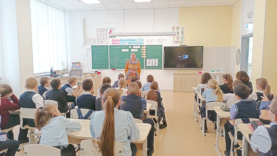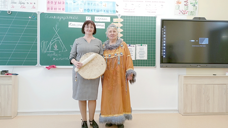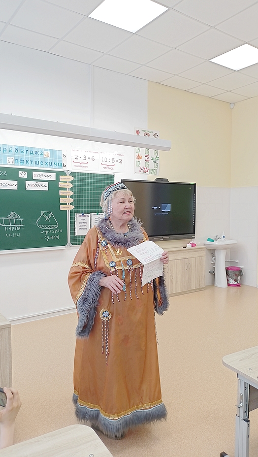 Чина Владимировна вошла в класс под общие аплодисменты. Как и всегда, в нарядном национальном костюме и звучным бубном в руках. Поприветствовав школьников, эвенская сказочница рассказала о себе, о своем творчестве и книгах, изданных Магаданским издательством «Охотник». Член Союза писателей России, лауреат регионального конкурса «Гордость Колымы - 2022», обладатель премии Юрия Рытхэу и Общероссийской литературной премии «Дальний Восток» им. В. К. Арсеньева», хранительница эвенского этноса и активный общественный деятель Чина Моторова известна не только на Колыме, но и далеко за ее пределами.