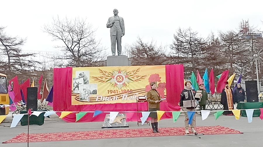 В 12.00 на площади состоялся традиционный митинг, посвященный 79-й годовщине Победы советского народа в Великой Отечественной войне 1941 - 1945 гг. К соотечественникам, ветеранам, землякам, уважаемым гостям обратились: врио главы Ольского муниципального округа И. А. Ерисова, военный комиссар Ольского района Магаданской области Д. Н. Емельянов и отец Георгий. Ведущая Северина Касьянова объявила минуту молчания. Под мерные звуки метронома участники митинга выразили почтение подвигу героев и скорбь о погибших во время Великой Отечественной войны. После этого прозвучал трехкратный залп из оружий почётного караула. После митинга большая колонна жителей выдвинулась в Сквер памяти и скорби, где возложили цветы к памятнику, посвящённому подвигу советского солдата в годы Великой Отечественной.