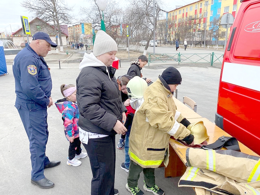 Пожарная часть продемонстрировала автомобиль первой помощи на базе «ГАЗель», оснащённый современным оборудованием для тушения пожаров и проведения аварийно-спасательных работ. Вниманию жителей и гостей посёлка были предложены боевая одежда пожарного и каски пожарных разных исторических эпох. Экспозиция государственной противопожарной службы пользовалась неизменным интересом и у взрослых, и у детей разных возрастов. С нескрываемым восторгом все примеряли на себя образ пожарного и фотографировались. Слушали рассказы о том, как используется пожарно-техническое вооружение для тушения пожаров, о том, как боёвка и каска защищают пожарных от огня, и, конечно же, о том, как нужно себя вести, чтобы избежать пожара и не попасть в беду.