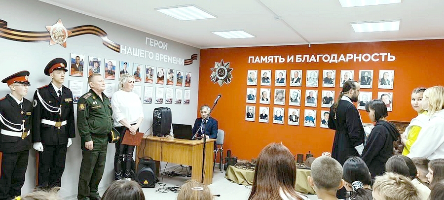 Минутой молчания почтили память бойцов СВО, которым возложили цветы, а отец Георгий прочитал молебен.