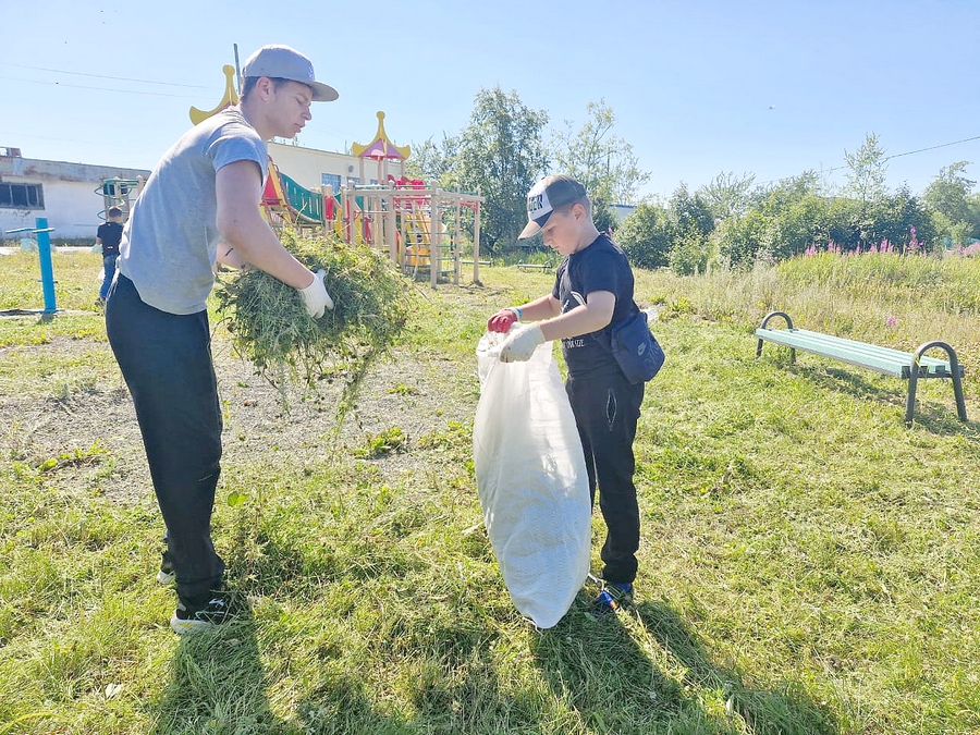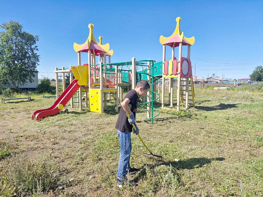 Заметили ребята, что на детской игровой площадке выросло много травы и дружно отправились на наведение порядка. Руководитель отряда скосил траву бензокосилкой, а ребята убрали ее и навели порядок. Играй, детвора, лето продолжается! А затем, по просьбе работников почты, отправились помочь одинокому пенсионеру - убрали траву у двора и во дворе.