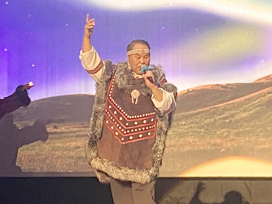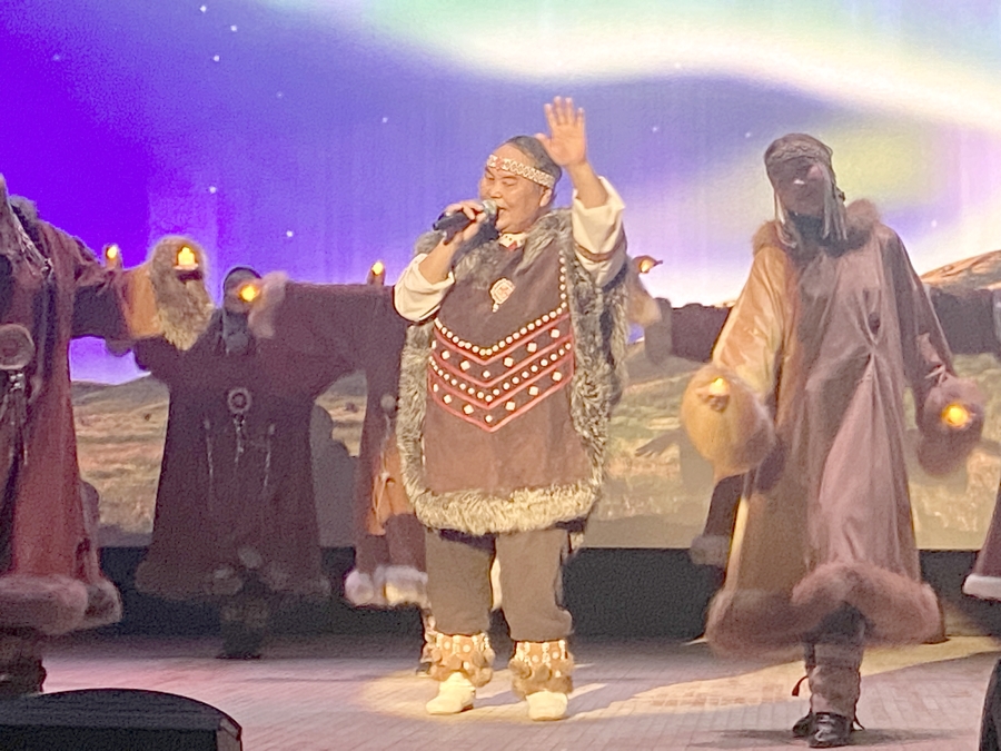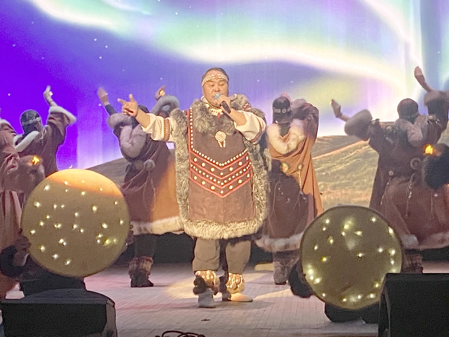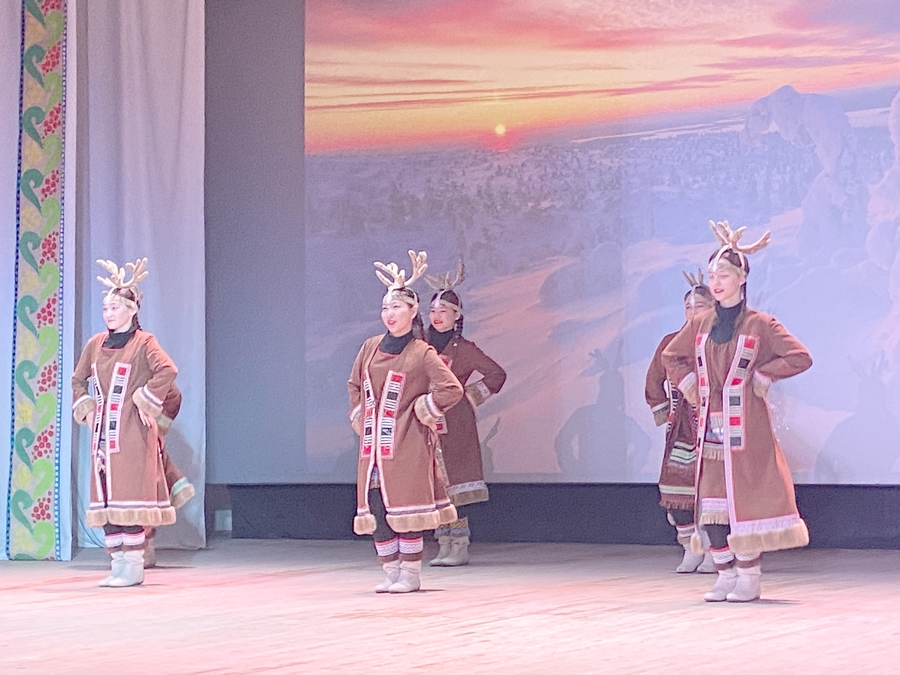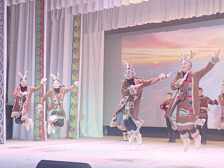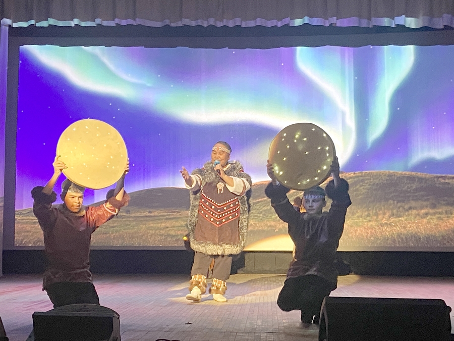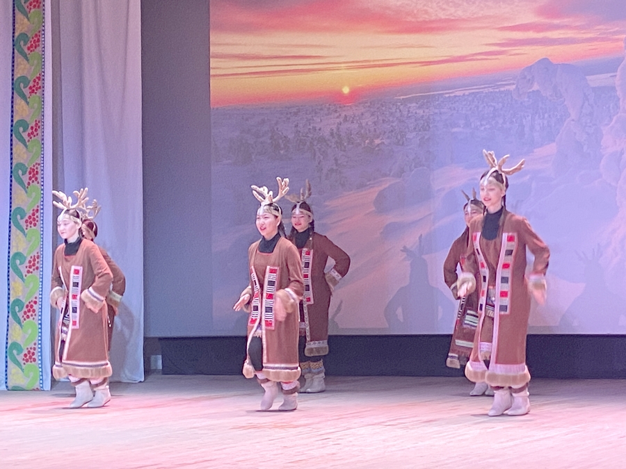 Магаданская область - одна из самых колоритных многонациональных регионов России. Ола, как и вся Россия, крепка своей духовной общностью, взаимоуважением и дружбой народов. Танец - это характер и образ жизни северного народа, а песня - это его душа. Композицию «Зов предков» на бубне, варгане и горловым пением исполнил Олег Ныпевги! Участники ансамбля «Нэлкэни» - танец «Гэлэ учакчому».