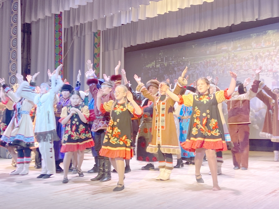 Старинный, круговой народный танец звучит на разных языках почти одинаково: «Ёхор», «Хэде», «Хоруми», «Хоро», «Круг». Это всё о хороводе - танце, в котором проявляется чувство единения и дружбы! Все участники праздничного концерта, взявшись за руки, как одно единое целое, одна большая семья - семья братских народов России - закружились в весёлом хороводе. Хоровод является символом дружбы народов! Всех нас объединяет чувство гордости за свою страну, за свой край, за свой район, за нашу славную историю!