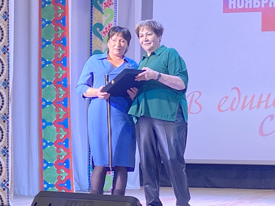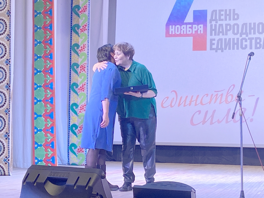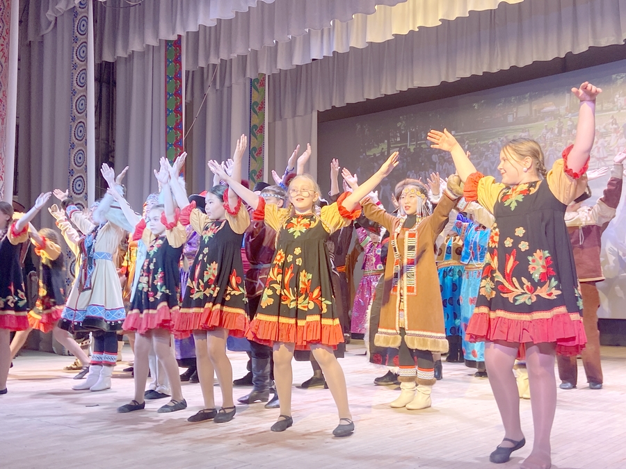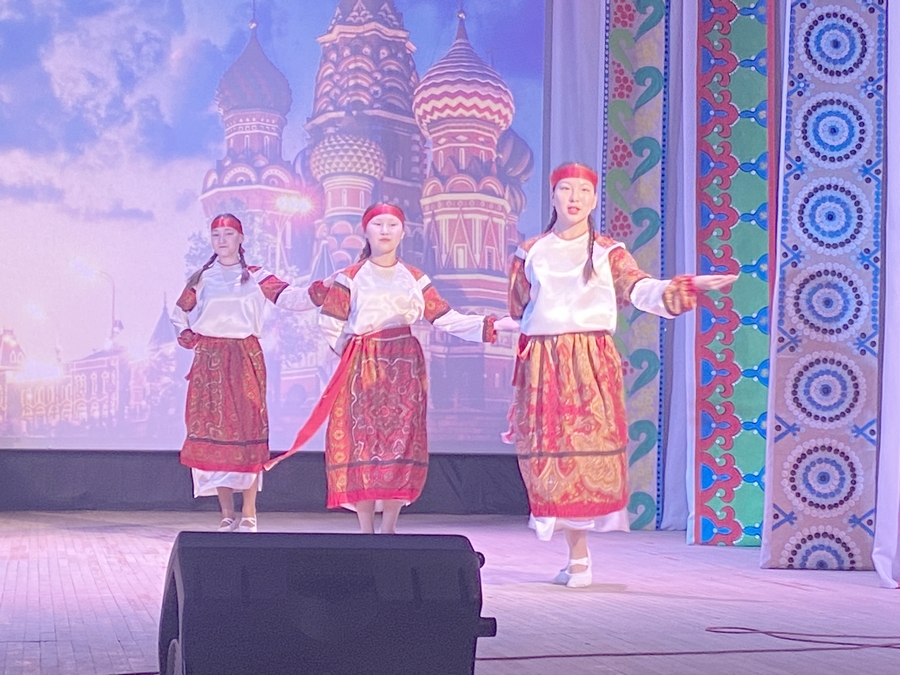 В праздничном концерте зрители увидели танцы и песни представителей разных народностей. Зал аплодисментами встретил самый многочисленный народ в России - русских, которых представили: народный ансамбль русской песни «Лель» (рук. А. Бобарико), самая маленькая участница этого ансамбля Алиса Яковлева, танцевальная группа «Кабриоль» (рук. О. Туинова) и хор Детского дома им. Логунова (рук. О. Алексейчук).