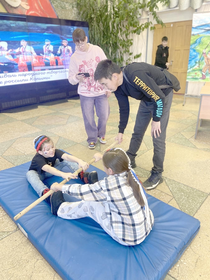 На 1-м этаже работала ярмарка местных производителей сельхозпродукции, на 2-м - бурятское землячество «Байкал» показывало мастер-классы: «Разбивание хребтовой кости» и «Игра на бараньих лодыжках»; Л. С. Щербакова и Н. Н. Игнатенко учили как изготовить обереги из кожи и бисера в национальных северных мотивах, а сотрудники ЦДО - плетению косичек.