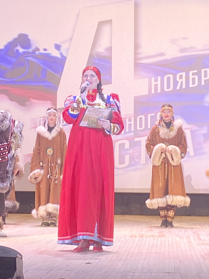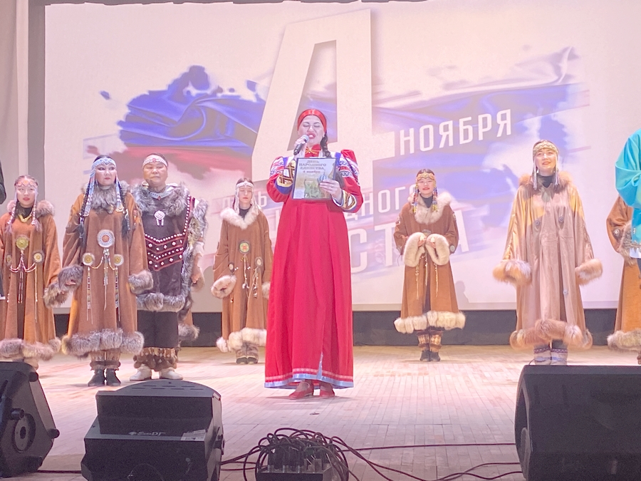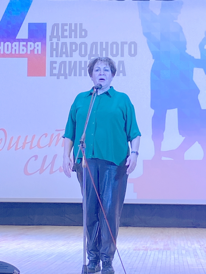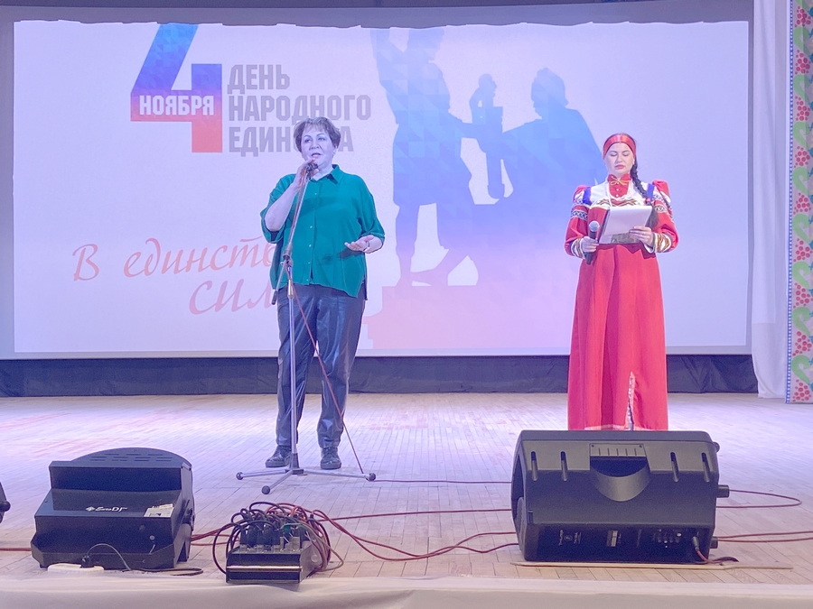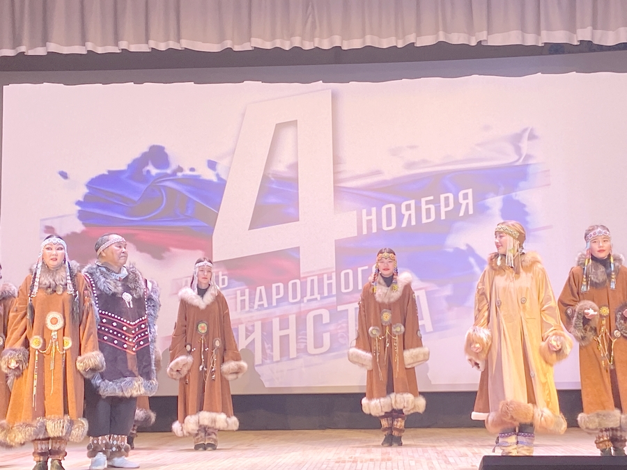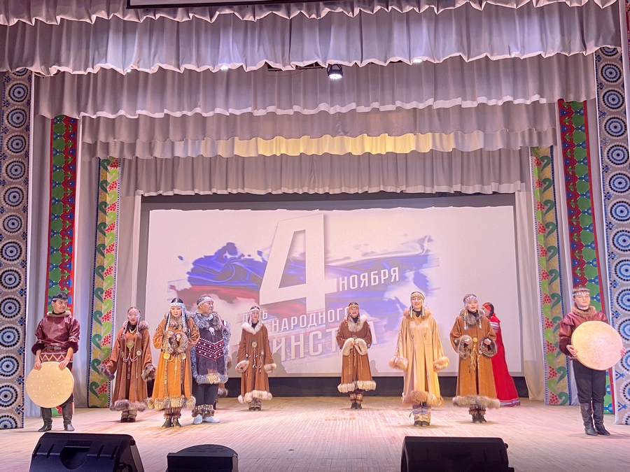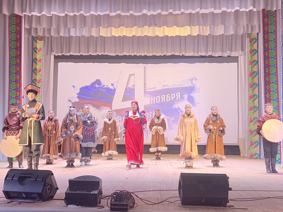 В зале праздничный концерт, посвященный Дню народного единства, начался под звуки завораживающей северной мелодии, пения солиста ансамбля песни и танца народов Севера «Энер» Олега Ныпевги в сопровождении танца со свечами народного национального ансамбля «Нэлкэни» (рук. Е. Журавлева). Ведущие концерта в национальных одеждах Северина Касьянова (казачий наряд), Андрей Заика (русский костюм) и Данзан Эрдни-Горяев (калмыцкий костюм) поприветствовали зрителей и открыли концерт. Многонациональное единство, разнообразие культур и объединяющий сильный дух всех жителей нашей Родины сильно и мощно прозвучал в песне «Я - русский мир», которую исполнил Народный вокальный ансамбль эстрадной песни «Контраст» (рук. В. С. Красильщикова).