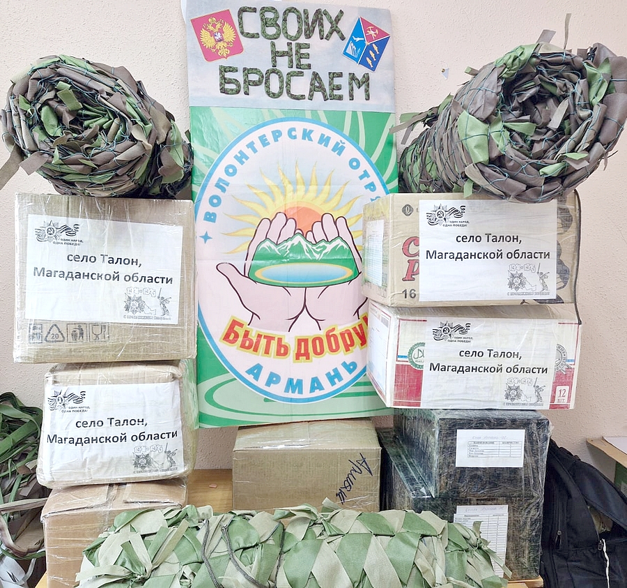 Ребята из отряда стали первыми на охотском побережье, кто начал по собственной инициативе собирать гуманитарную помощь для бойцов СВО и поддерживать членов их семей. Мы стараемся отправлять посылки с помощью по персональным заявкам от солдат, чтобы не было ничего лишнего. Только самое необходимое. 12 октября 2024 исполнился год с момента изготовления первой маскировочной сети. На сегодняшний день их руками сплетены и отправлены в зону СВО уже 152 сети.