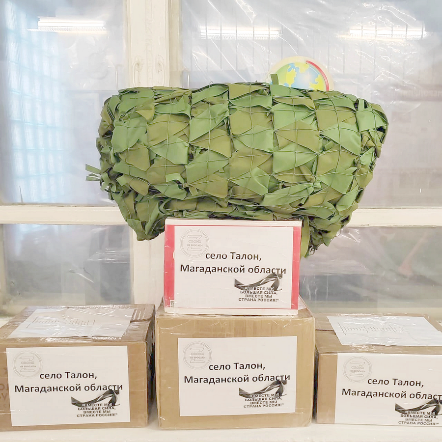 Коллективы школы с. Талон, детского сада «Пушинка» п. Армань, школы п. Армань плетут маскировочные сети, собирают гуманитарную помощь, изготавливают обереги и пишут поздравительные письма. Отправили на фронт уже более двухсот писем с сердечными пожеланиями для наших защитников. Неоднократно с приобретением материала для плетения сетей коллективам образовательных учреждений и отряду «Быть добру!» помогал депутат Магаданской областной Думы Евгений Николаевич Салтанов. Плетением маскировочных сетей также занимаются в Администрации Ольского округа, в Центре культуры п. Ола, Краеведческом музее, ЦДО п. Ола. Сотрудники ФОК «Волна» с самых первых дней Специальной военной операции вносят посильный вклад для поддержки наших солдат, плетут сети, собирают гуманитарную помощь. Никто не остался равнодушным.