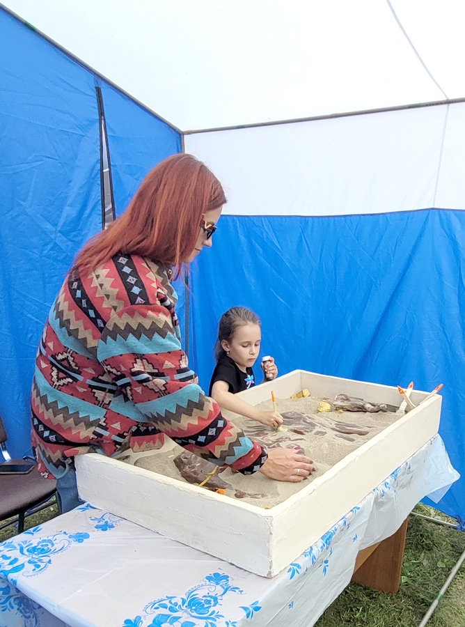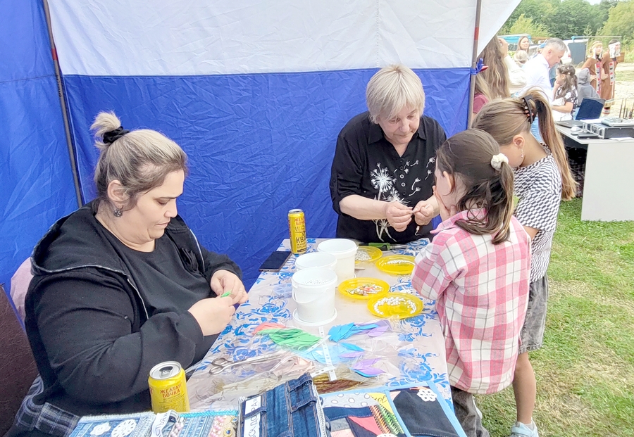 Не пришлось скучать гостям и около палаток. От всей души благодарим коллег за проведение мероприятий в рамках празднования 105-летнего юбилея села. Мастер-класс по плетению маскировочных сетей провел Алексей Заикин (п. Армань), по изготовлению украшений - Р. Гусейнова и И. Патрина (ДК с. Гадля), а викторину «Здесь Родины моей начало» - Л. Веретехина и Ю. Кузьменко, сотрудники Ольской центральной библиотеки им. И. А. Варрена. Волонтеры культуры провели интерактивную программу, посвященную мамонтенку Диме (рук. К. Якушева), рукодельницы из села Талон (Антонина Одаренко) подготовили выставку прекрасных изделий, многие гости с праздника увозили с собой на память талонские подарки.
