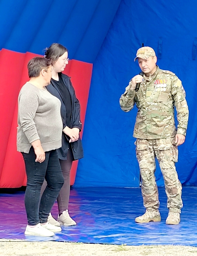Никто войны не хочет, никогда! Но если враг посмеет посягнуть на волю наших братьев и сестер, мы всегда сможем дать отпор своим мечом! Примером тому служит житель села Евгений Лебедев, участник СВО. Он добровольно отправился защищать Родину в самом начале операции, но вынужден был вернуться по состоянию здоровья. Для поздравления на сцену вышел А. Р. Аксанов, руководитель Магаданской областной общественной организации ветеранов СВО «Колыма».
