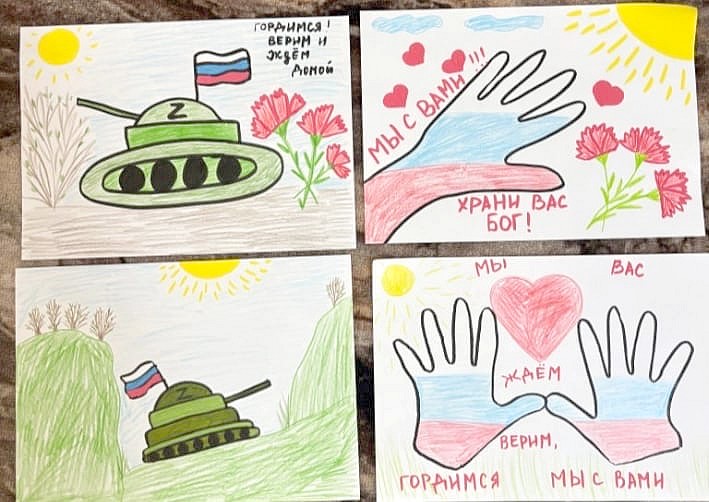 На средства, собранные жителями села, были куплены медикаменты и переданы в библиотеку им. А. С. Пушкина. А дети написали трогательные письма со словами поддержки и нарисовали рисунки нашим солдатам. «Дорогой солдат! Благодарим тебя за мужество и отвагу», – пишут ребята.