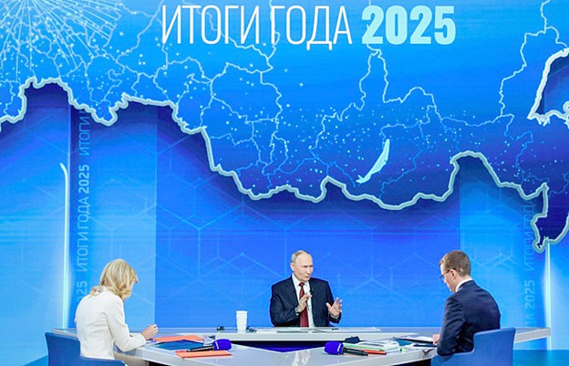 Москва. 19 декабря. Прямая линия с президентом РФ в 2025 году была снова совмещена с большой пресс-конференцией и продлилась четыре с половиной часа. За это время глава государства в прямом эфире подвёл итоги года и ответил на ключевые вопросы журналистов и жителей страны, всего к началу мероприятия было более 2,5 миллионов обращений. В. В. Путин начал с СВО, многое было посвящено экономике и международным отношениям. Программу провели телеведущая Первого канала Екатерина Березовская и журналист ВГТРК Павел Зарубин (16+).