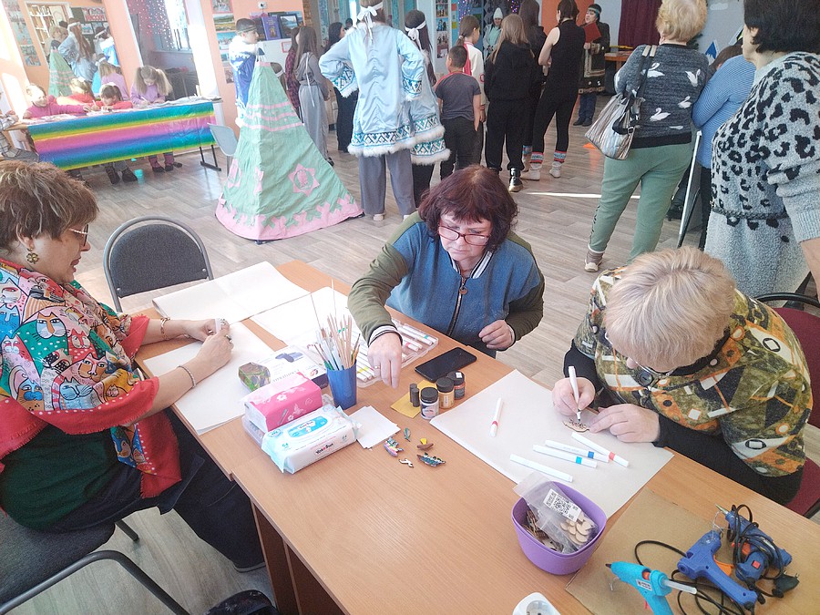 Ольский окружной центр культуры: Екатерина Гусева, руководитель Народной агитационно-художественной бригады «Юность», и волонтеры культуры провели креативный мастер-класс, участники которого почувствовали себя модными дизайнерами и создали яркую, красочную одежду в стиле Тай-дай. Участники Народного национального ансамбля «Нэлкэни» показали свое искусство, исполнив два танца, а руководитель ансамбля Елена Журавлева провела мастер-класс по изготовлению магнитика «Северный мальчик». Зажигательная исполнительница эстрадных песен Марина Кобец спела так, что заставила зрителей пуститься в пляс.