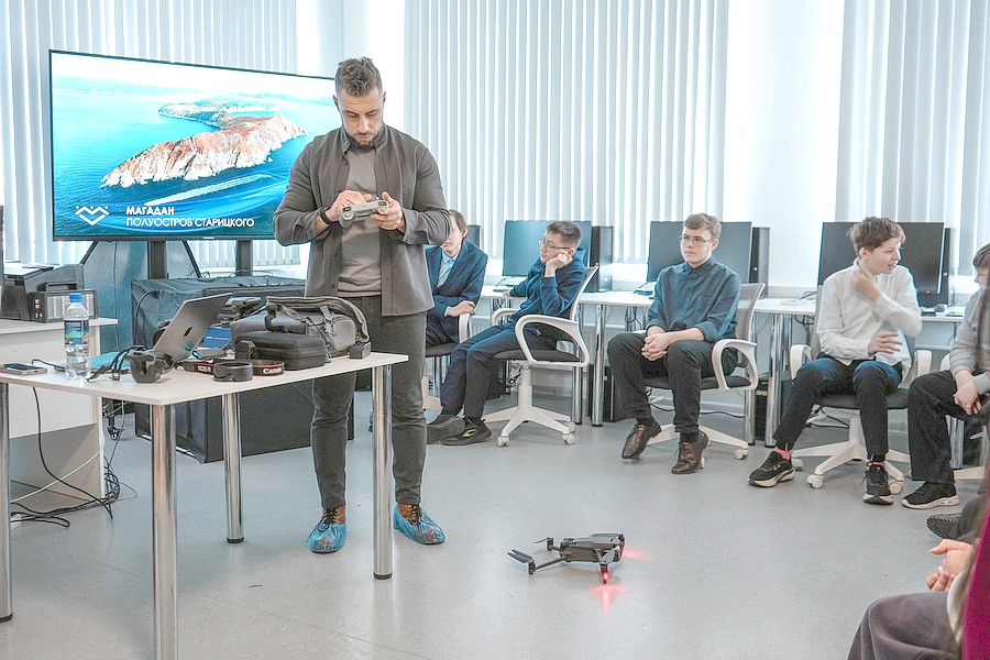 Юные фотографы узнали о секретах красивой (вкусной) фотографии и о возможностях профессионального оборудования студии фото- и видеопроизводства. А еще запустили квадрокоптер и управляли им! На примерах разобрали постановку кадра и посмотрели фильм «Сквозь озёра в Альпенград», за который Денис Сергеевич получил несколько наград и который стал очень популярным среди колымчан.
